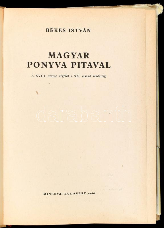 Békés István: Magyar Ponyva Pitaval. A XVIII. század végétől a XX. század kezdetéig. Bp., 1966, Minerva, 480 p. Kiadói egészvászon-kötés, kissé sérült kiadói papír védőborítóban.