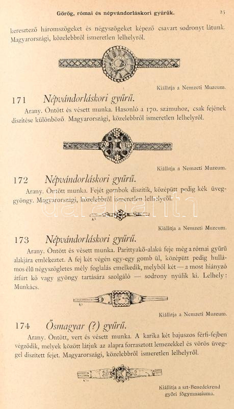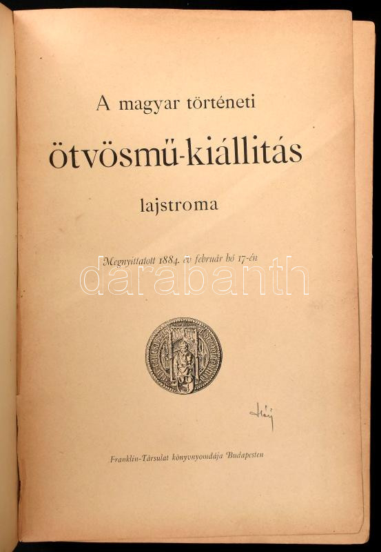 A magyar történeti ötvösmű-kiállítás lajstroma. Megnyittatott 1884. év február hó 17-én. Bp., 1884., Franklin, 4+VIII+108+180+174+2+120+56 p.+XXXII t. Fekete-fehér képanyaggal illusztrált. Félvászon-kötésben, kopott borítóval, a gerinc sarkain kis sérülésekkel, szétvált, sérült kötéssel. egy lapon bejegyzéssel.