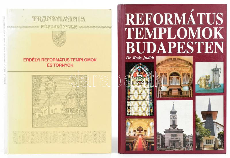 Erdélyi református templomok és tornyok. Tranysylvánia Képeskönyvek. Bp., 1989, Polygon. Reprint kiadás. Debreczeni László linómetszeteivel gazdagon illusztrált. Kiadói kartonált papÃrkötés. + Dr. Koós Judith: Református templomok Budapesten. Bp., 1996, BÃró family. Fekete-fehér és szÃnes képekkel. Kiadói kartonált papÃrkötés.