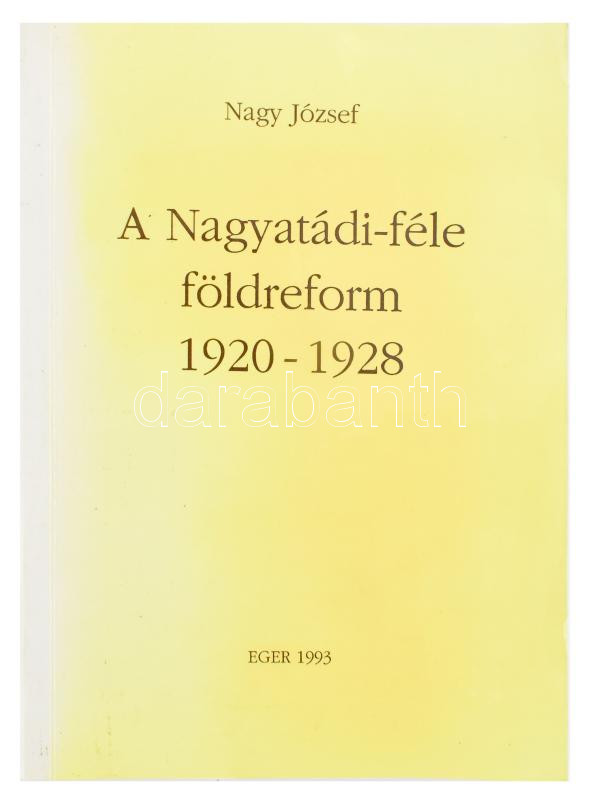 Nagy József: A Nagyatádi-féle földreform 1920-1928. A szerző, Nagy József (1929-2013) történész, főiskolai tanár által Szuhay Miklós (1928-2017) professzor, gazdaságtörténésznek dedikált! Eger, 1993, Bessenyei György Tanárképző Főiskola. 203 p. Megjelent 500 példányban. Kiadói papírkötés, kissé kopott gerinccel és borítóval, máskülönben jó állapotban.