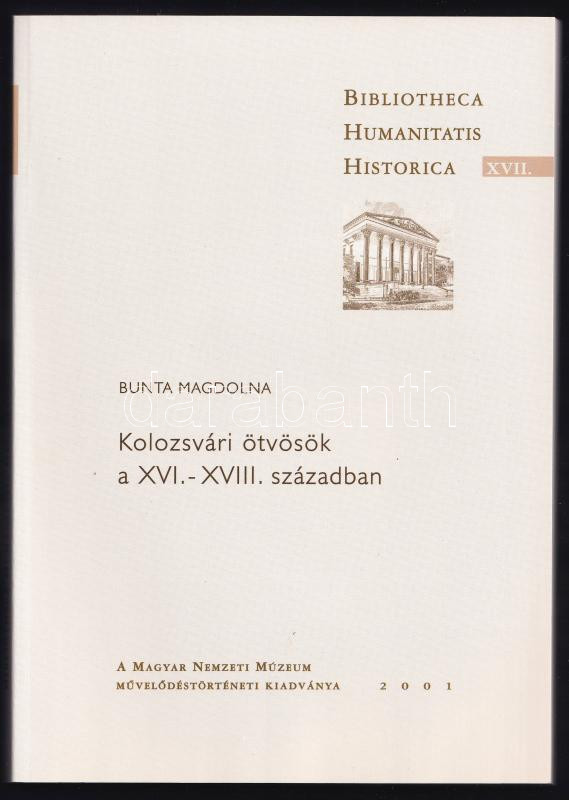 Bunta Magdolna: Kolozsvári ötvösök a XVI.-XVIII. században. A Magyar Nemzeti Múzeum Művelődéstörténeti Kiadványa. Bp., 2001, a Magyar Nemzeti Múzeum kiadása. 249 p. Megjelent 700 példányban. Fekete-fehér fotókkal illusztrált. Kiadói papírkötés, jó állapotban.