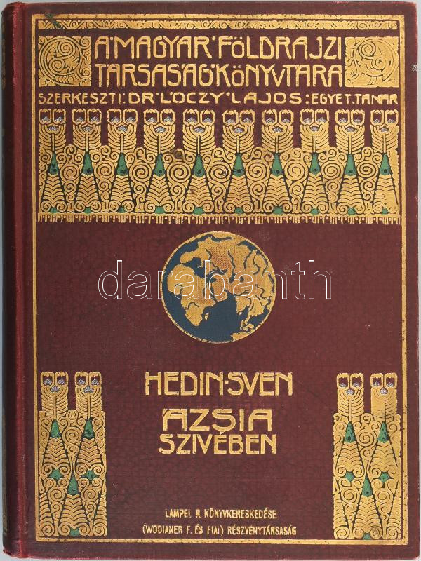 [Hedin, Sven (1865-1952)] Sven Hedin: Ázsia szívében II. kötet. Tízezer kilométernyi úttalan utazás. Fordította: Dr. Thirring Gusztáv. Képekkel és térképekkel. Magyar Földrajzi Társaság Könyvtára. Bp.,én., Lampel R. (Wodianer F. és Fiai) Rt., 4+270+2 p. +16 t. Gazdag egészoldalas és szövegközti fekete-fehér fotókkal illusztrálva. Kiadói dúsan aranyozott egészvászon sorozatkötésben, a borítón kis kopásnyomokkal.