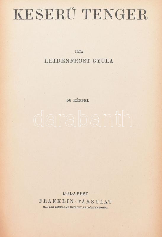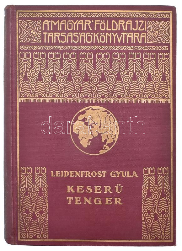 Leidenfrost Gyula (1885-1967): Keserű tenger. Magyar Földrajzi Társaság Könyvtára. Bp.,[1936], Franklin, 223+1 p. +24 (Kétoldalas fekete-fehér képtáblák) t. Kiadói dúsan aranyozott egészvászon sorozatkötésben, a borítón kopásnyomokkal.