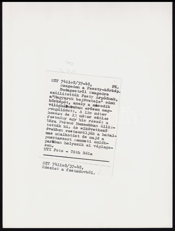 Leírás: 1974 és 1980 Két felvétel a Feszty-körkép restaurálásáról, hátoldalán felirat, ezüst zselatinos fotópapíron, 18x24 cm