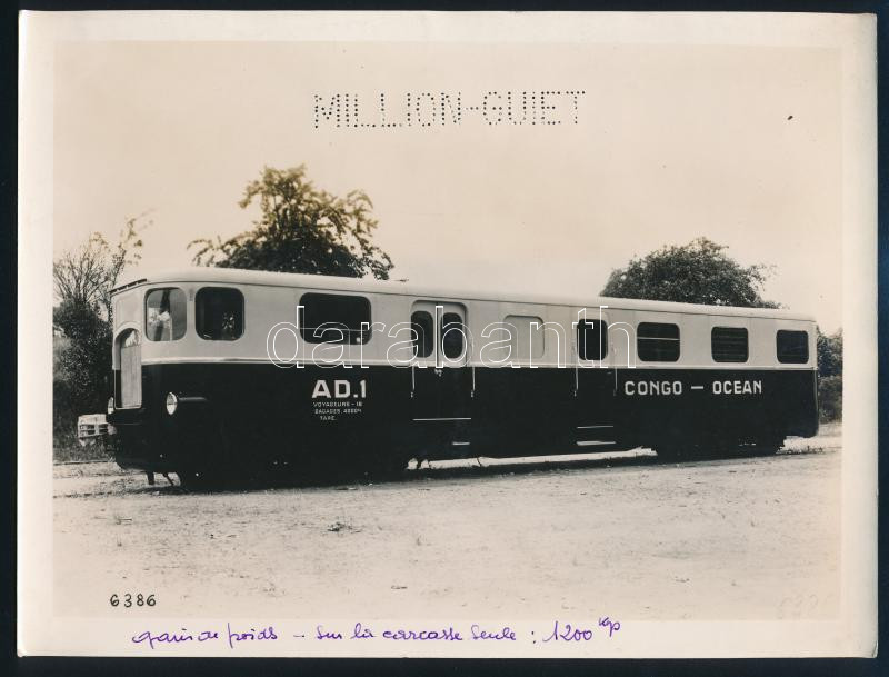 cca 1930-40 Congo-Ocean vonat Kongóban, Million-Guiet gyártmány, fotó, alján francia ny. felirattal, jelzés nélkül / Railway photo of the Congo-Ocean line in Africa, unsigned, with description in French at the bottom, 18x24 cm