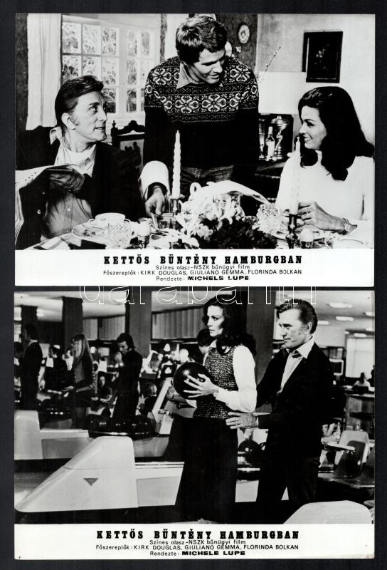 cca 1972 ,,Kettős bűntény Hamburgban" című olasz - német bűnügyi film jelenetei és szereplői, 13 db vintage produkciós filmfotó, ezüst zselatinos fotópapíron, a használatból eredő (esetleges) kisebb hibákkal, 18x24 cm