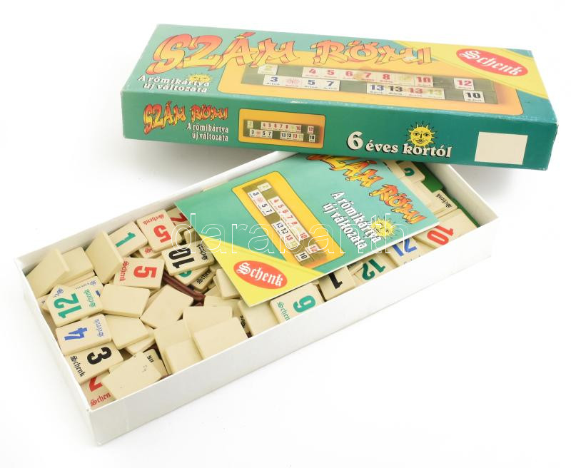 Számrömi, táblás römi játék, magyar nyelvű leírással, eredeti dobozába... https://www.darabanth.com/hu/437-Gyorsarveres/437.0/Mutargy-papirregiseg-egyeb/Jatekok~500015/Szamromi-tablas-romi-jatek-magyar-nyelvu-leirassal-eredeti-dobozaban~II2842998