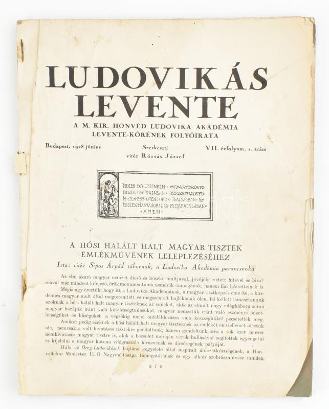 1928 Ludovikás Levente folyóirat, M. Kir. Honvéd Ludovika Akadémia Lev... https://www.darabanth.com/hu/437-Gyorsarveres/437.0/Mutargy-papirregiseg-egyeb/Militaria~1000001/1928-Ludovikas-Levente-folyoirat-M-Kir-Honved-Ludovika-Akademia-Levente-Korenek-folyoirata~II2853588