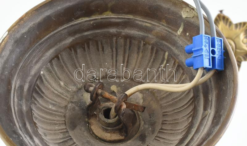 Leírás: Bronz csillár, antik, porcelán foglalattal. Háromágú, 60 cm