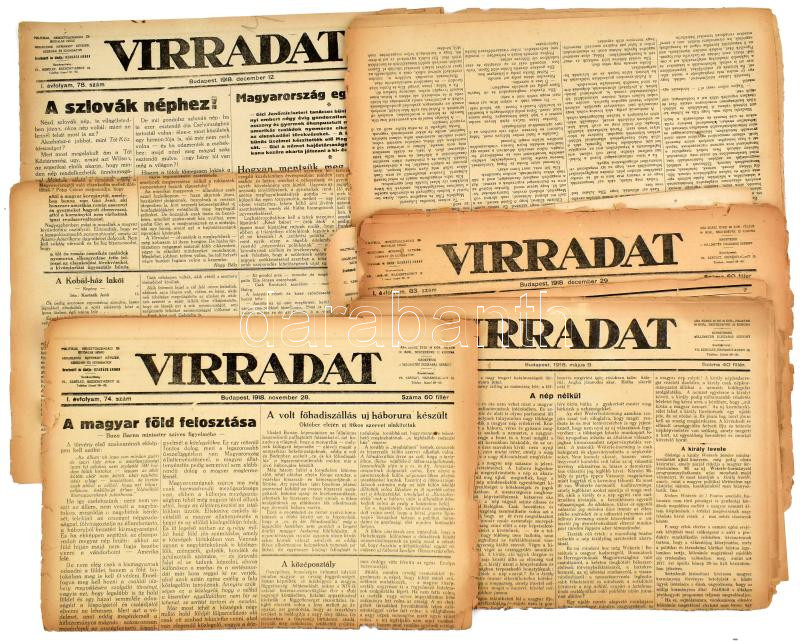 1918 A Virradat c. napilap I. évfolyamának 5 db forradalmi száma az ős... https://www.darabanth.com/hu/437-Gyorsarveres/437.0/Mutargy-papirregiseg-egyeb/Nyomtatvanyok~1000009/1918-A-Virradat-c-napilap-I-evfolyamanak-5-db-forradalmi-szama-az-oszirozsas-forradalom-idej~II2849422