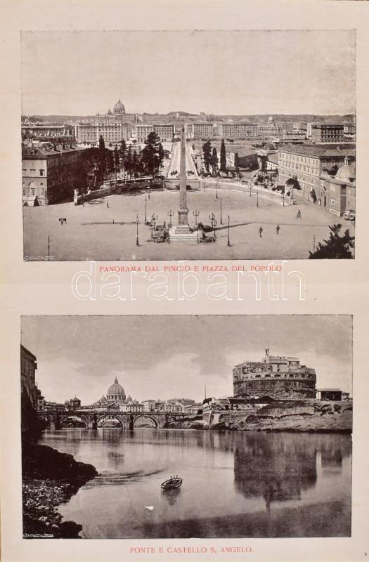 cca 1910 Ricordo di Roma, leporelló album 26 db képpel (közte egy panorámakép), térképpel, dekoratív, aranyozott félvászon-kötésben, a borítón némi kopással, 17,5x13 cm