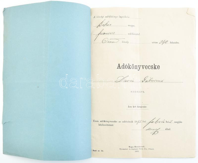 1895 Adókönyvecske, kitöltött. Békés,. Szarvas. Deru község https://www.darabanth.com/hu/437-Gyorsarveres/437.0/Mutargy-papirregiseg-egyeb/Okmanyok~500020/1895-Adokonyvecske-kitoltott-Bekes-Szarvas-Deru-kozseg~II2809622
