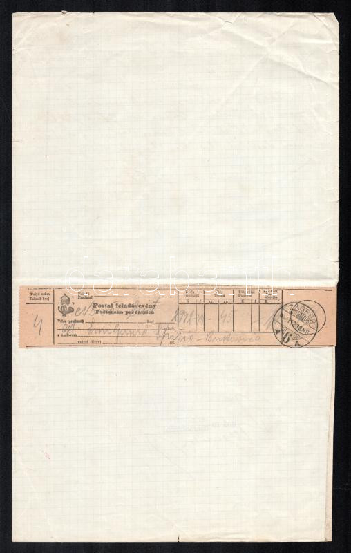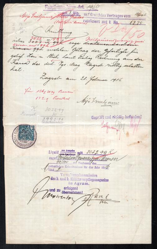 Leírás: Zágráb 1916 Nyugta 30K okmánybélyeggel