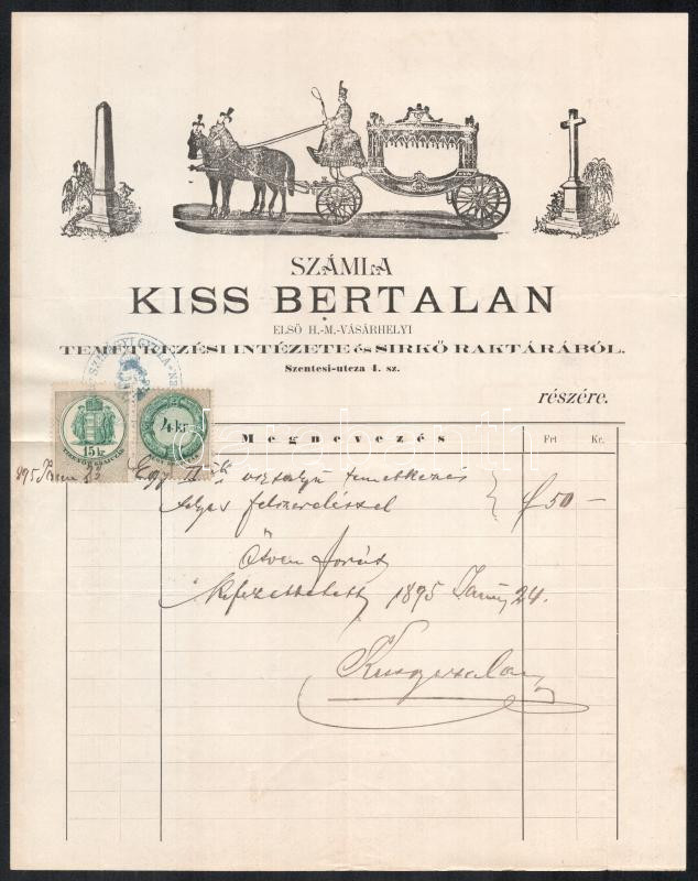Leírás: 1895 Hódmezővásárhely temetkezési számla