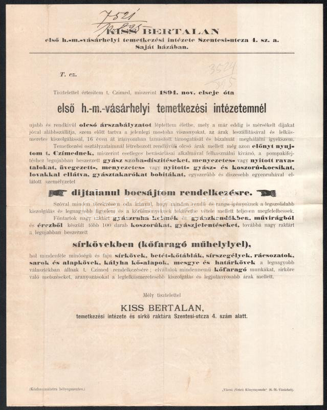 1895 Hódmezővásárhely temetkezési számla https://www.darabanth.com/hu/437-Gyorsarveres/437.0/Mutargy-papirregiseg-egyeb/Reklam~500025/1895-Hodmezovasarhely-temetkezesi-szamla~II2844912