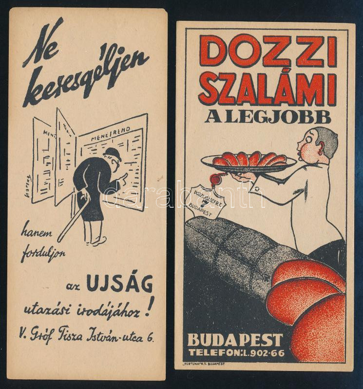2 db számolócédula: Dozzi szalámi, Ujság utazási iroda https://www.darabanth.com/hu/437-Gyorsarveres/437.0/Mutargy-papirregiseg-egyeb/Reklam~500025/2-db-szamolocedula-Dozzi-szalami-Ujsag-utazasi-iroda~II2852141