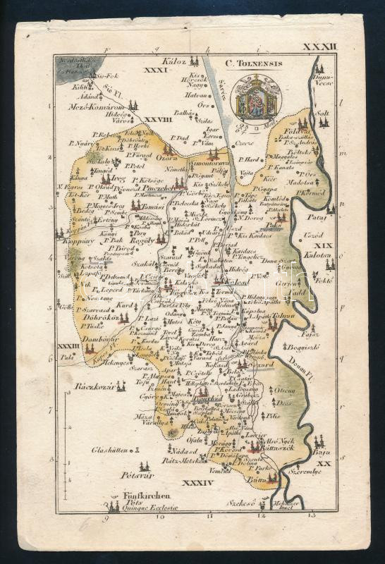 1804 Berken János (1765 kr.-1822): Tolna vármegye térképe. C[omitatus] Tolnensis, rajta: Dunaföldvár, Paks, Ozora, Szekszárd, Dombóvár, In: [Korabinszky János Mátyás]: Korabinsky, Johann Matthias: Atlas Regni Hungariae Portatilis XXXII., Bécs, 1804. Schaumburg und Compagnie, színezett rézmetszet, 16,5x10,5 cm.