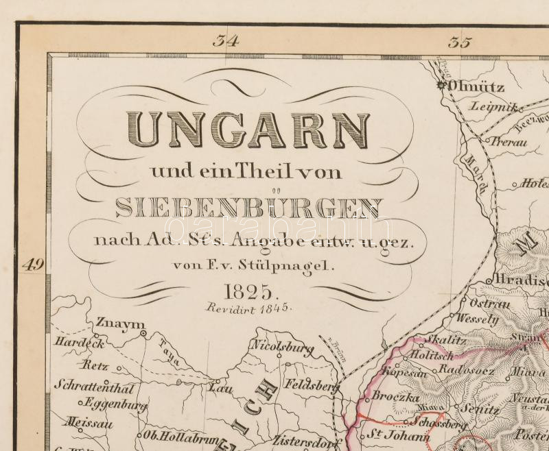 1845 Magyarország és Erdély egy részének acélmetszetű térképe. Ungarn und ein Theil von Siebenbürgen, Stülpnagel 1825, revidiert 1845. megj Stileler's Hand Atlas. 377x315 mm / Colored steel plate engraved map of Hungary and a part of Transylvania.