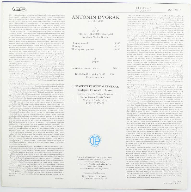 Antonín Dvořák, Budapesti Fesztiválzenekar, Fischer Iván - VIII. G-dúr Szimfónia Op. 88, Karnevál - Nyitány Op. 92.