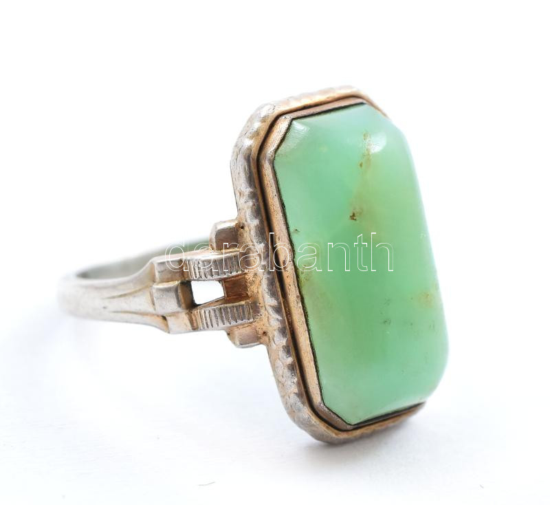 Leírás: Ezüst(Ag) gyűrű zöld kővel, jelzett, méret: 55, bruttó: 3,9 g