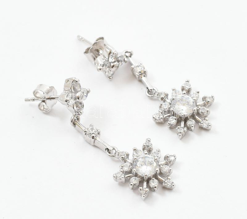 Leírás: Ezüst(Ag) hópelyhes fülbevalópár, jelzett, h: 4 cm, bruttó: 5,5 g
