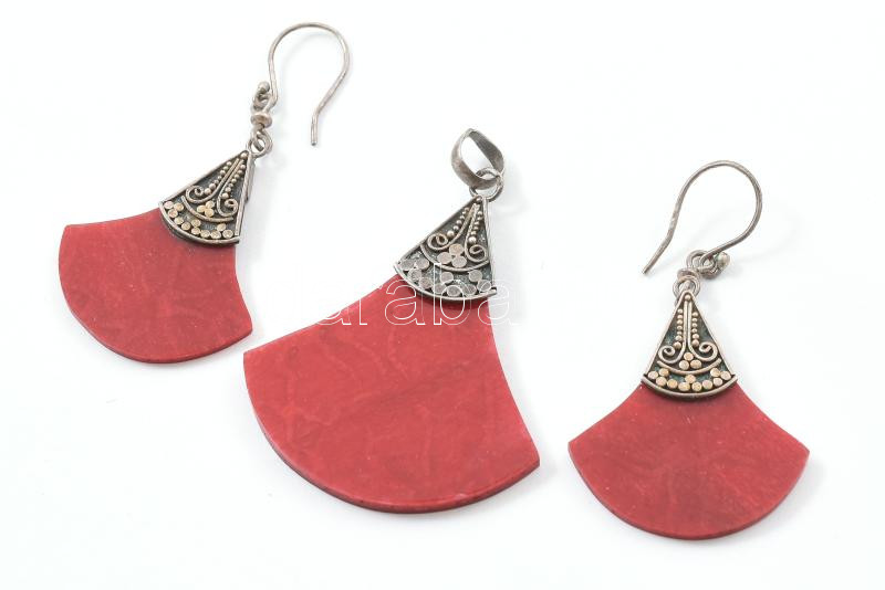 Leírás: Ezüst(Ag) korall medál és fülbevalópár, jelzett, h: 3 és 5 cm, bruttó: 10,9 g