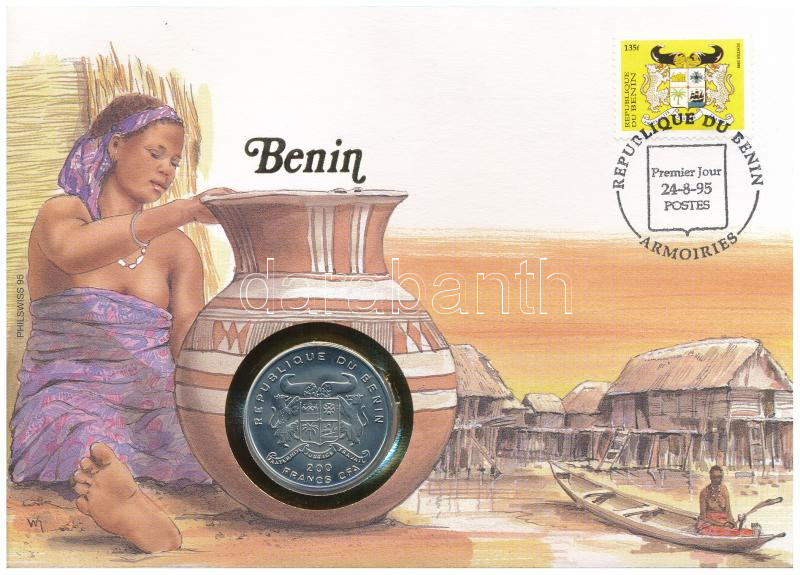 Benin 1994. 200Fr "Őskori állatok sorozat - Acanthopholis" Cu-Ni felbélyegzett borítékban, bélyegzéssel, német nyelvű ismertetővel T:1 Benin 1994. 200 Francs "Prehistoric Animals series - Acanthopholis" Cu-Ni in envelope with stamp, cancellation and a german information sheet C:UNC Krause KM#8