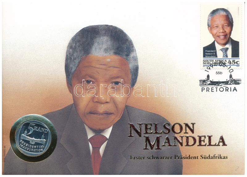 Dél-Afrika 1994. 5R "Elnöki beiktatás" érme bélyeges "N... https://www.darabanth.com/hu/437-Gyorsarveres/437.0/Numizmatika/Ermes-es-bankjegyes-boritekok~2000004/Del-Afrika-1994-5R-Elnoki-beiktatas-erme-belyeges-Nelson-Mandela-boritekban-belyegzes~II2844323
