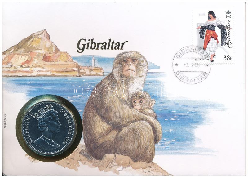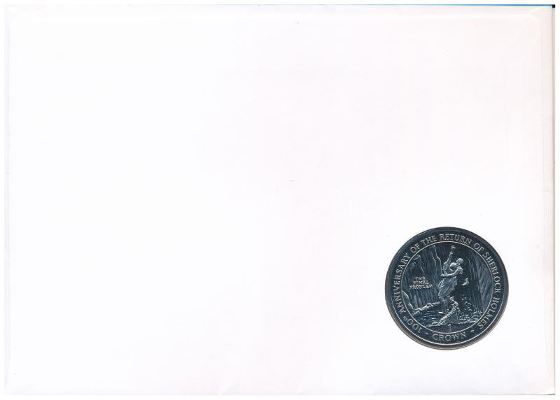 Gibraltár 1994. 1C Cu-Ni "Sherlock Holmes visszatérésének 100. évfordulója sorozat - A végső probléma" forgalomba nem került emlékkiadás felbélyegzett borítékban, bélyegzéssel, német nyelvű leírással T:PP Gibraltar 1994. 1 Crown Cu-Ni "100th Anniversary of the Return of Sherlock Holmes - The Final Problem" non-circulating commemorative coin in envelope with stamp, cancellation, and a description in german C:PP Krause KM#292