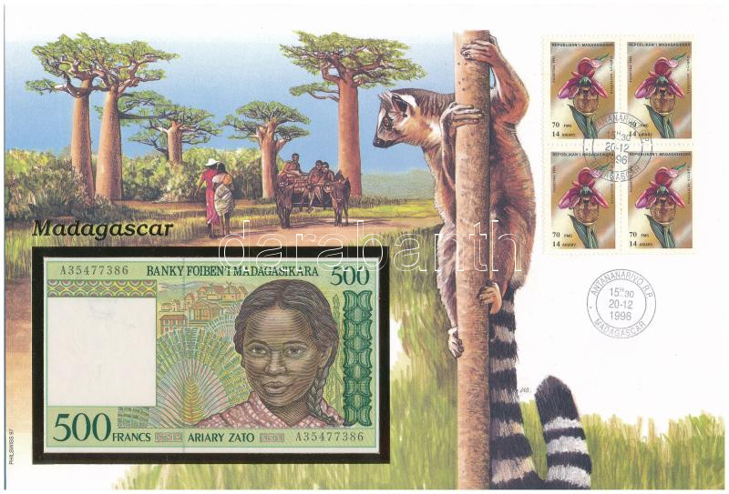 Leírás: Madagaszkár 1994-1996. 500Fr felbélyegzett borítékban, bélyegzéssel T:UNC