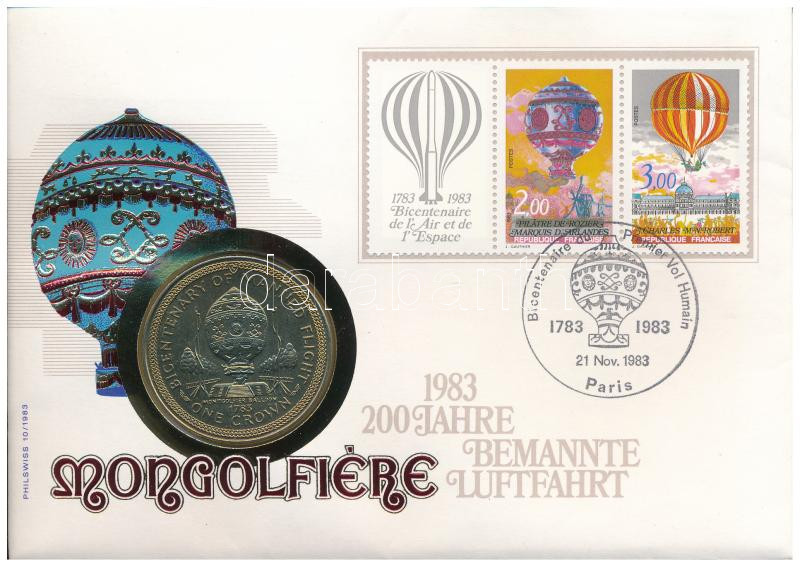Man-sziget 1983. 1C Cu-Ni "Az ember repülésének 200. évfordulója" felbélyegzett borítékon, alkalmi bélyegzéssel T:UNC