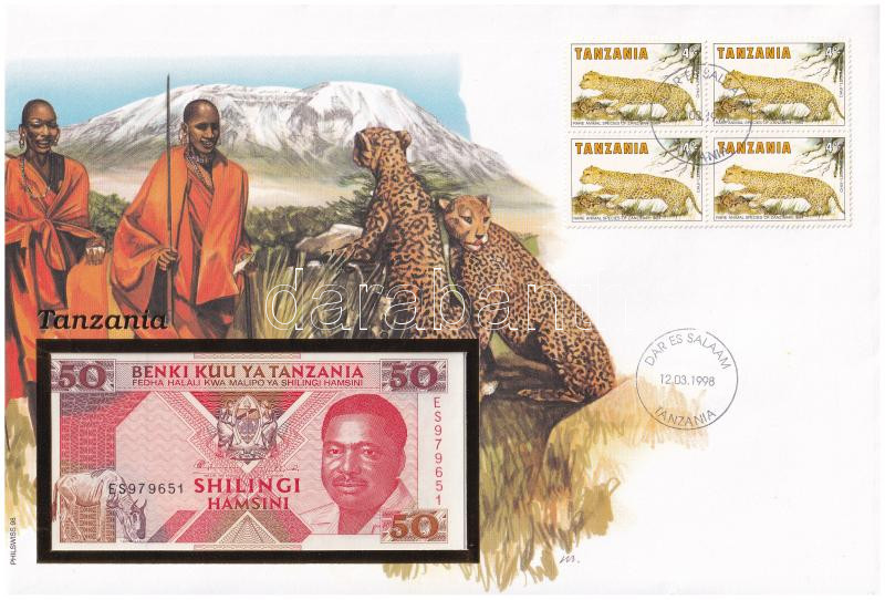 Leírás: Tanzánia 1993. 50Sh felbélyegzett borítékban, bélyegzéssel T:UNC Tanzania 1993. 50 Shilingi in envelope with stamp and cancellation C:UNC