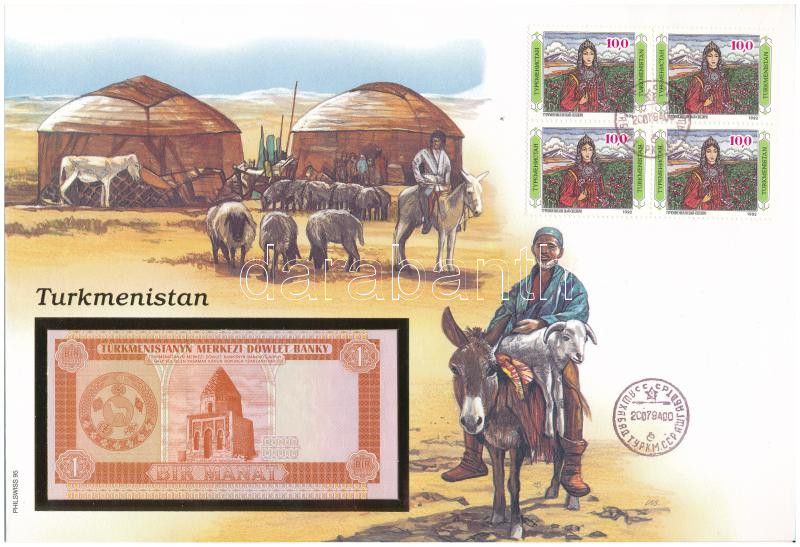 Leírás: Türkmenisztán 1993. 1M felbélyegzett borítékban, bélyegzéssel T:UNC Turkmenistan 1993. 1 Manat in envelope with stamp and cancellation C:UNC