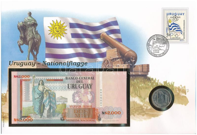 Leírás: Uruguay 1981. 5P Cu-Ni + 1989. 2000P felbélyegzett borítékban, bélyegzéssel T:UNC, UNC