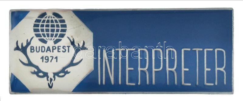 1971. "INTERPRETER (Tolmács)" a Vadászati Világkiállítás műg... https://www.darabanth.com/hu/437-Gyorsarveres/437.0/Numizmatika/Falerisztika-Kituntetesek-jelvenyek~2500005/1971-INTERPRETER-Tolmacs-a-Vadaszati-Vilagkiallitas-mugyantas-fem-resztvevoi-jelven~II2818528