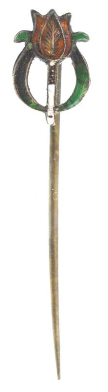 ~1910. "Tulipános Iparvédő Mozgalom" zománcozott jelvény. A mozgalom az 1905-1906-os belpolitikai válság idején, a magyar áruk védelmében jött létre, a mozgalomban Feszty Árpád is részt vett. (23x23mm) T:VF zománchiba