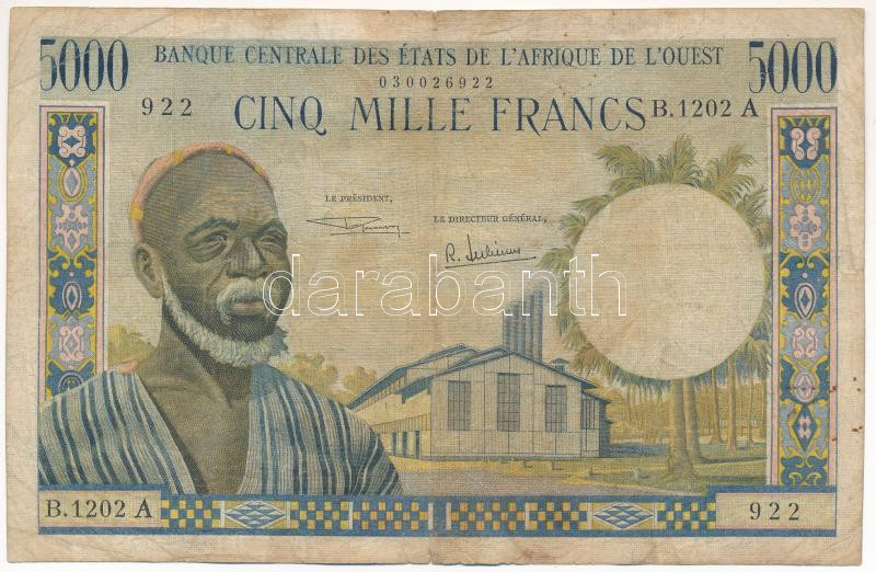 Nyugat Afrikai Államok / Elefántcsontpart DN (1974.) 5000Fr T:F,VG kis beszakadások