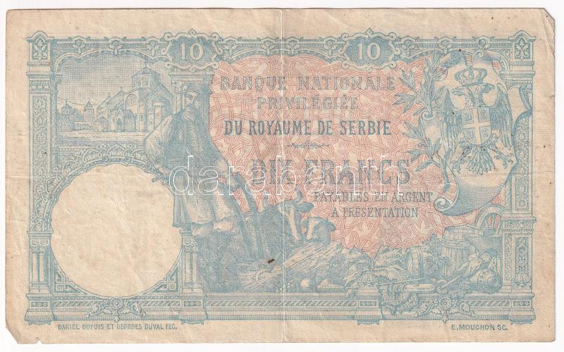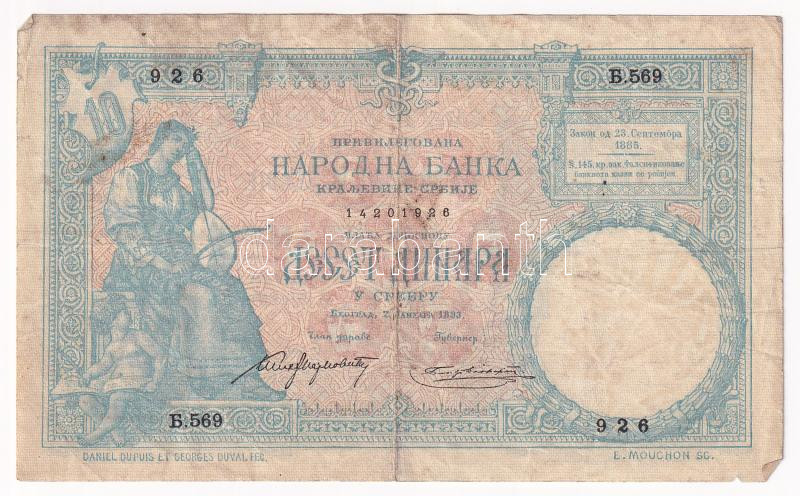 Serbia 1893. 10 Dinara C:F spot, small tear