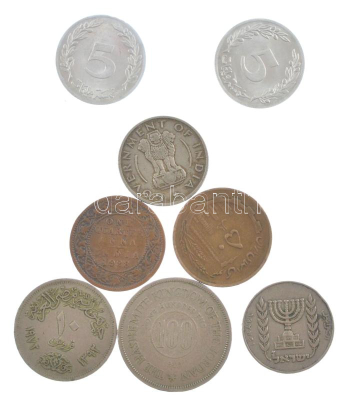 8db-os vegyes afrikai és ázsiai érmetétel, közte Tunézia, India, Egyiptom, Izrael, Jordánia, Irán T:AU-F patina 8pcs of mixed african and asian coin lot, in it Tunesia, India, Egypt, Izrael, Jordan, Iran C:AU-F patina