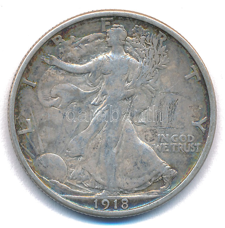 Amerikai Egyesült Államok 1918. 1/2$ Ag "Walking Liberty" T:... https://www.darabanth.com/hu/437-Gyorsarveres/437.0/Numizmatika/Kulfoldi-fem-es-ezustpenzek~2500001/Amerikai-Egyesult-Allamok-1918-12USD-Ag-Walking-Liberty-T3-patina-USA-1918-12-Dollar-Ag-Walk~II2846670