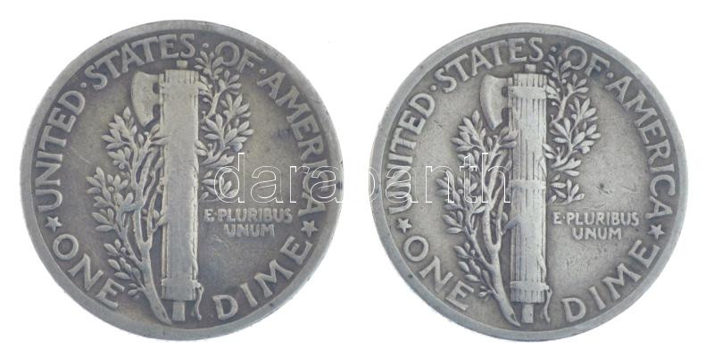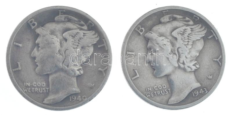 Amerikai Egyesült Államok 1940-1943. 10c Ag "Mercury" (2xklf) T:XF,VF patina