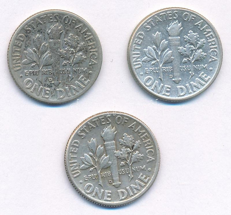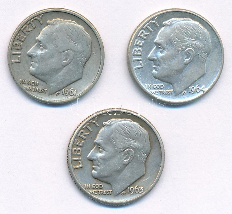 Amerikai Egyesült Államok 1961-1964. 10c Ag "Roosevelt" (3xklf) T:AU-VF patina
