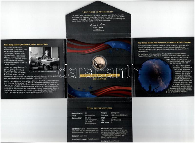 Amerikai Egyesült Államok 2019S 1$ "American Innovation - Delaware" karton díszcsomagolásban T:PP (Reverse Proof) USA 2019S 1 Dollar "American Innovation - Delaware" in decorative cardboard case C:PP (Reverse Proof)