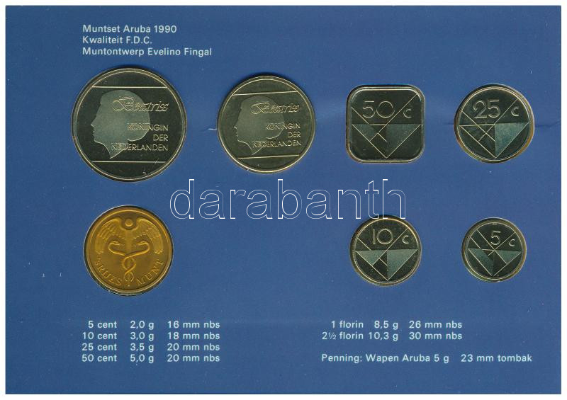 Aruba 1990. 5c - 2 1/2Fl (6xklf) forgalmi sor + "Aruba" zset... https://www.darabanth.com/hu/437-Gyorsarveres/437.0/Numizmatika/Kulfoldi-fem-es-ezustpenzek~2500001/Aruba-1990-5c-2-12Fl-6xklf-forgalmi-sor-plus-Aruba-zseton-szettben-karton-disztokban-TUNC-pa~II2847301
