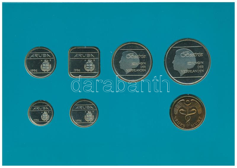 Aruba 1994. 5c - 2 1/2Fl (6xklf) forgalmi sor + "Aruba" zseton szettben, karton dísztokban T:UNC a tok ragasztása elengedett