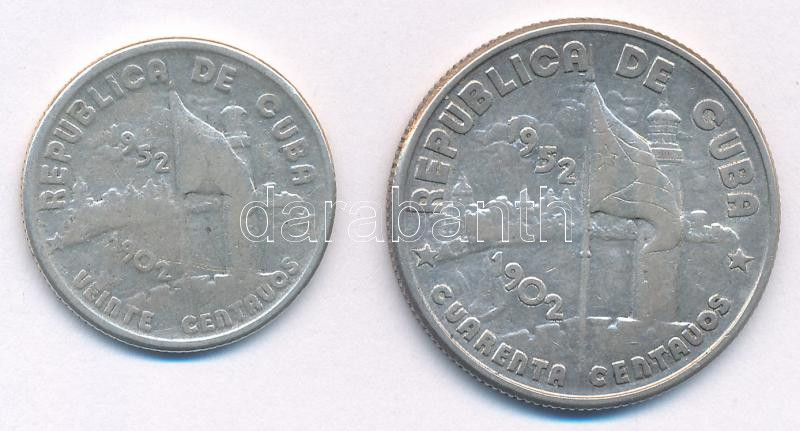 Cuba 1952. 20 Centavos Ag "50th Anniversary of the Republic of Cuba" + 40 Centavos Ag "50th Anniversary of the Republic of Cuba" C:XF,VF patina