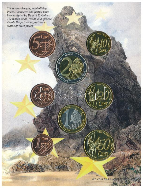 Great Britain 2002. 1 Cent - 2 Euro (8xdiff) trial strike coin set in cardboard case C:UNC