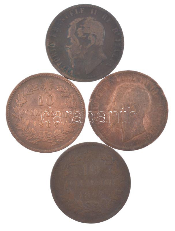 Leírás: Olaszország 1862-1867. 10c bronz "II. Viktor Emánuel" (4xklf) T:F patina, ph