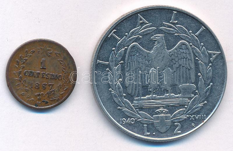 Leírás: Olaszország 1867M 1c Cu "II. Viktor Emánuel" + 1940. 2L acél "III. Viktor Emánuel" T:F,XF