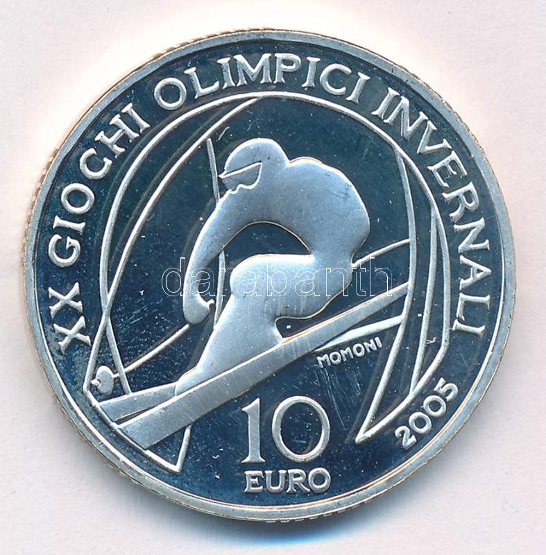 Italy 2005. 10 Euro Ag "20th Winter Olympics 2006 - Alpine Skiing" in capsule C:PP patina, fingerprints